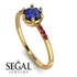 Glow with style and lavishness with this irresistible Basket Sapphire Ring. This Basket Diamond Ring has a superb design and refined appeal, thanks to its narrow band and round center Sapphire. Furthermore, it has second, smaller round stones on the sides. Get this Basket Sapphire Ring and you’ll have a piece of jewelry she will always wear.