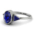 Timeless and graceful, this Geometrical Bezel Sapphire Ring is just what you need for a special occasion. This Geometrical Bezel Sapphire Ring consists of a comfortable band and an Oval central Sapphire, with two second triangle stones next to it. With this stunning Geometrical Bezel Sapphire Ring you’ll want to wear forever