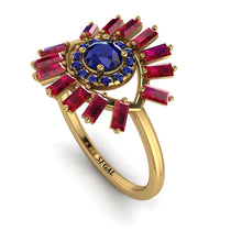 This lovely Round and Baguette Sapphire Vintage Engagement Ring will represent a symbol of elegance and luxury which makes you feel beautiful and confident. Its center stone is round, surrounded by smaller, round stones . Finally, baguette shaped stones surround these, to complete the classy look. This Round and Baguette Sapphire Vintage Engagement Ring will be a stunning addition to your finger.