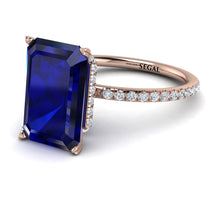 Hidden Halo Emerald Cut Sapphire Engagement Ring - Melodi No. 14