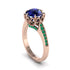 This exquisite piece features a brilliant round-cut Sapphire set in a classic setting beautifully complemented by milgrain accents. The intricate milgrain edges add a unique texture, complementing the sparkle of the central Sapphire. It's the perfect choice for those who appreciate a blend of classic and contemporary styles. You can select your preferred center stone size and shape for the center stone, which is then elegantly accompanied by Emerald and side stones.Crafted with care and precision, this ring is available in 14k gold, 18k gold, or platinum, making it a timeless treasure.