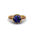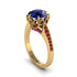 This exquisite piece features a brilliant round-cut Sapphire set in a classic setting beautifully complemented by milgrain accents. The intricate milgrain edges add a unique texture, complementing the sparkle of the central Sapphire. It's the perfect choice for those who appreciate a blend of classic and contemporary styles. You can select your preferred center stone size and shape for the center stone, which is then elegantly accompanied by Ruby and side stones.Crafted with care and precision, this ring is available in 14k gold, 18k gold, or platinum, making it a timeless treasure.