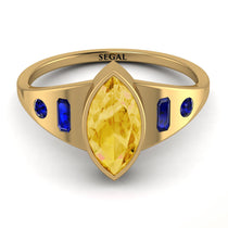 If you something both original and modern, you’ll get it with this captivating Marquise Bezel Citrine Ring. This Marquise Bezel Citrine Ring is a round band with a marquise stone in the center, an emerald shaped ring to either side of it, and a round shaped stones in either side of those. When you want to stand out and be noticeable, this Marquise Bezel Citrine Ring is for you.
