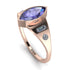 If you something both original and modern, you’ll get it with this captivating Marquise Bezel Tanzanite Ring. This Marquise Bezel Tanzanite Ring is a round band with a marquise stone in the center, an emerald shaped ring to either side of it, and a round shaped stones in either side of those. When you want to stand out and be noticeable, this Marquise Bezel Tanzanite Ring is for you.