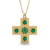 This gorgeous gold cross, decorated with dazzling Emeralds is a truly unique piece of jewelry. The elegant shape of the pendant is artfully decorated with round-cut Emeralds, which brings attraction to this piece. The stylish design of this cross allows it to be both a casual piece of jewelry and look great with an evening dress. This beautiful cross will be a great gift for your beloved ones.
