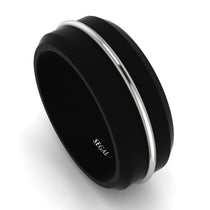 This beautiful black and gold-tone black titanium ring features matte finish top with a high polish grooved center. If you are looking for a ring that is scratch proof and forever keep its shine, than our Black Titanium rings are for you.
