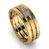 This stunning ring for him displays three rows with 3 bezel princess cut diamond set in gold as its eye-catching centerpiece. A style he'll treasure, this ring glistens diamond and a bright polished shine. Custom-made to fit his ring size.