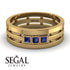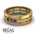 This stunning ring for him displays three rows with 3 bezel princess cut Sapphire set in gold as its eye-catching centerpiece. A style he'll treasure, this ring glistens Sapphire and a bright polished shine. Custom-made to fit his ring size.