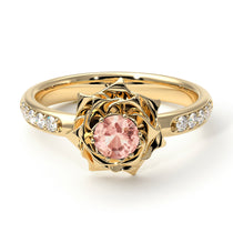 My ‘Elena’ Rose Morganite ring brings the beauty of Flowers Morganite and Diamonds together in one exquisite and comfortable ring. Nestled in the center of the flower is a single Natural Morganite, flanked on either side by 5 smaller natural diamonds. Set in solid 14K Yellow gold, this vintage antique engagement ring is sure to make her throw her arms around you, give you a huge kiss and say yes!