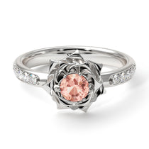 My ‘Elena’ Rose Morganite ring brings the beauty of Flowers Morganite and Diamonds together in one exquisite and comfortable ring. Nestled in the center of the flower is a single Natural Morganite, flanked on either side by 5 smaller natural diamonds. Set in solid 14K White gold, this vintage antique engagement ring is sure to make her throw her arms around you, give you a huge kiss and say yes!
