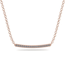 Simple yet stylish, this trend setting white diamond bar necklace dazzles in the gold setting. This slightly curved bar necklace features pave-set 17 round diamond to show them in their very best light. Attached to this matching gold chain, making it a perfect adornment for layering.