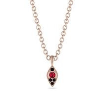 An exquisite vintage-inspired necklace! Crafted in gold,this necklace features an open art-deco pendant accented with five sparkling white Ruby in the petal-shaped pendant, showcasing a vibrant round-cut Ruby in the center. Complete with milgrain detailing, this pendant is adorned on a matching 18-inch chain securing with a spring-ring clasp.