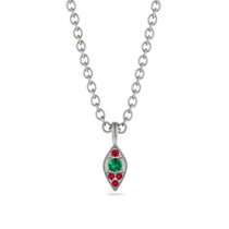 An exquisite vintage-inspired necklace! Crafted in gold,this necklace features an open art-deco pendant accented with five sparkling white Emerald in the petal-shaped pendant, showcasing a vibrant round-cut Emerald in the center. Complete with milgrain detailing, this pendant is adorned on a matching 18-inch chain securing with a spring-ring clasp.