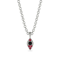 An exquisite vintage-inspired necklace! Crafted in gold,this necklace features an open art-deco pendant accented with five sparkling white black diamond in the petal-shaped pendant, showcasing a vibrant round-cut black diamond in the center. Complete with milgrain detailing, this pendant is adorned on a matching 18-inch chain securing with a spring-ring clasp.
