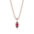 An exquisite vintage-inspired necklace! Crafted in gold,this necklace features an open art-deco pendant accented with five sparkling white Ruby in the petal-shaped pendant, showcasing a vibrant round-cut Ruby in the center. Complete with milgrain detailing, this pendant is adorned on a matching 18-inch chain securing with a spring-ring clasp.