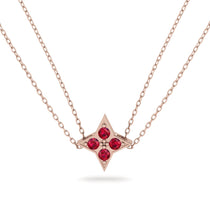A cheerful accessory for a very special woman, this marvelous Gold Ruby Star Necklace is the perfect accessory for your true love! This necklace has been crafted in gold with four round Ruby set in the pendant that hangs from the double cable chain. So be the star of the night by wearing this shining Ruby pendant.