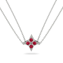A cheerful accessory for a very special woman, this marvelous Gold Ruby Star Necklace is the perfect accessory for your true love! This necklace has been crafted in gold with four round Ruby set in the pendant that hangs from the double cable chain. So be the star of the night by wearing this shining Ruby pendant.