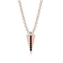 With everlasting grace and a deluxe appearance, this Triangle black diamond Necklace is the most stylish thing you can wear. This mesmerizing necklace has a lovely triangle design, with seven round black diamonds arranged in a row in the middle of it.
