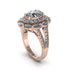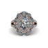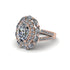 This stunning engagement ring features an elegant oval-cut Diamond center stone surrounded by a breathtaking halo of round brilliant and marquise-cut accent Diamond. The ring's band has a split shank design set with smaller round accent stones on both sides, creating a stunning visual effect. With its distinctive double halo and split shank, this ring exudes sophistication and romance, making it the perfect symbol of your eternal commitment. Embark on your journey together with a ring as extraordinary as your love.