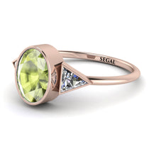 Timeless and graceful, this Geometrical Bezel Peridot Ring is just what you need for a special occasion. This Geometrical Bezel Peridot Ring consists of a comfortable band and an Oval central Peridot, with two second triangle stones next to it. With this stunning Geometrical Bezel Peridot Ring you’ll want to wear forever