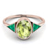 Timeless and graceful, this Geometrical Bezel Peridot Ring is just what you need for a special occasion. This Geometrical Bezel Peridot Ring consists of a comfortable band and an Oval central Peridot, with two second triangle stones next to it. With this stunning Geometrical Bezel Peridot Ring you’ll want to wear forever