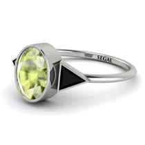 Timeless and graceful, this Geometrical Bezel Peridot Ring is just what you need for a special occasion. This Geometrical Bezel Peridot Ring consists of a comfortable band and an Oval central Peridot, with two second triangle stones next to it. With this stunning Geometrical Bezel Peridot Ring you’ll want to wear forever