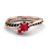 This delicate Ruby engagement ring is a timeless classic of jewelry reinvented in modern forms. This ring is a classic round 0.25 carat Ruby engagement ring with an additional stone in the center and the ring's sides.