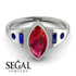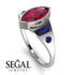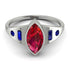 If you something both original and modern, you’ll get it with this captivating Marquise Bezel Ruby Ring. This Marquise Bezel Ruby Ring is a round band with a marquise stone in the center, an emerald shaped ring to either side of it, and a round shaped stones in either side of those. When you want to stand out and be noticeable, this Marquise Bezel Ruby Ring is for you.