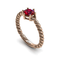 A prominent prong-set stone and intricately textured coiled band makes this one unforgettable ring. But don"t shake it from your thoughts-tell him this design is your dream ring and make it yours for an eternity. A diamond-or the stone of your choice-creates fireworks at the center of a top-of-the-line band crafted with a twist of solid gold intertwined with small round beads.