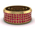 The Ruby Filigree Pave Band is a captivating blend of classic elegance and intricate craftsmanship. This handmade ring features a wide band adorned with 76 meticulously set round cut Rubys in a pave style, creating a shimmering surface that captures light from every angle. The 14K gold band is enhanced with a delicate floral filigree design on the inner shank, adding a touch of artistry and uniqueness to the piece. The seamless combination of sparkling Rubys and the ornate gold filigree makes this band a stunning accessory, perfect for weddings, anniversaries, or any special occasion where you want to make a lasting impression. The Ruby Filigree Pave Band is a timeless piece that embodies both luxury and intricate design.