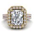 Two Tones Gorgeous Emerald Cut Diamond Pave Double Shank Engagement Ring With Hidden Stone - Veronica No. 76