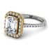 This Gorgeous Emerald Cut diamond Pave Engagement Ring with Hidden Stone is a uniquely fresh approach to a classic engagement ring. Beautiful emerald cut 2ct center stone with a sparkling halo of stones around, elegant pave of stones and dazzling surprise stone inside the ring will make her fall in love with this ring at first sight.