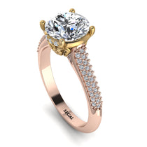 This Luxury Pave Round Cut diamond Engagement Ring with Hidden Stone is a uniquely fresh approach to classic bridal sets. Beautiful round cut 2ct center stone with unique elegant pave of stones and dazzling surprise stone inside the ring will make her fall in love with it at first sight.