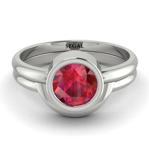 Solitaire Bezel Minimalist Ruby Bridal Set - Emerson No. 12