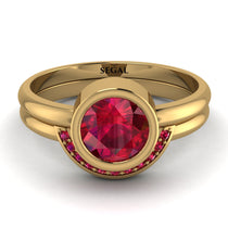This Bezel Ruby Bridal Set is a comforting and classy ring, and you’ll definitely love it. It has a gorgeous round-shaped on the top, in its own circular band, and the band is circular as well. If you’re still undecided and want something comfortable, choose this Bezel Ruby Bridal Set.