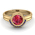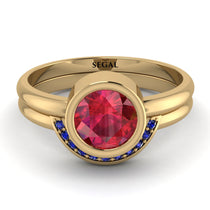 This Bezel Ruby Bridal Set is a comforting and classy ring, and you’ll definitely love it. It has a gorgeous round-shaped on the top, in its own circular band, and the band is circular as well. If you’re still undecided and want something comfortable, choose this Bezel Ruby Bridal Set.