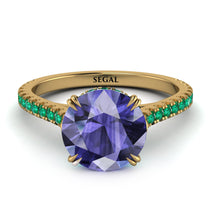 An unexpected Tanzanite ring always brings out the brightest smile. This elegant Tanzanite ring certifies your love and romance. Make your dear one feel special with thishidden Tanzanite ring. The center Tanzanite is set with double cat claw prongs.