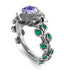 One of our favorite statement engagement rings, this exquisite design features 17 scintillating stones and story-telling enchantment. Sprouting jewel-set leaves climbing both sides of a slender band and a brilliant-cut stone, this treasured piece was modeled off Grecian laurel wreaths. Our decadent take on the historic prize makes it a dream-come-true ring that always catches someone's impressed eye.