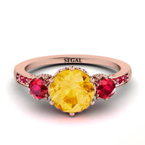 Vintage 3 Stones Citrine Ring With Micro Pave - Luna No. 614