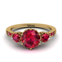 Vintage 3 Stones Ruby Ring With Micro Pave - Luna No. 70