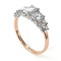 If you want to be original and have a unique look, you’ll get it with this captivating Emerald Cut diamond Ring with Hidden Diamonds. This Emerald Cut Diamond Ring with Hidden Diamonds has a lovely diamond center stone, with three more emerald cut stones to either side of it. When you want to stand out and be noticeable, this Emerald Cut diamond Ring with Hidden Diamonds is for you.