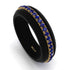 This cool & classic men's wedding band features round Sapphire wrapping the entire ring. Comfort fit, and black titanium materials. Comfort Fit rings have a rounded interior specifically designed for the most comfortable all-day wear. The contemporary metal Black Titanium offers strength and durability to every design.