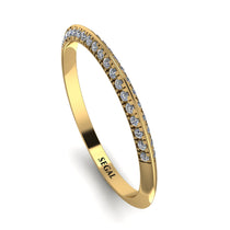 This Hidden diamond Wedding Band is a charming and comfortable circular band with two rows of round diamonds on the two sides. This Hidden diamond Wedding Band will both cement your hand, and stay with you forever