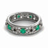 Are you searching for a ring to give her that will last her forever? This beautiful Anniversary ring is our Victoria Emerald ring. Set in 14K White Gold, this beautiful ring has flowers and a vintage feel that will always be in style. Set with a Green Emerald and Red Ruby, this ring is a gift that she will treasure forever.