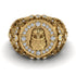 Embodying strength, wisdom, and an untamed spirit, The Majestic Eagle ring is a masterpiece of power and elegance. Crafted from luxurious 14K gold and adorned with 106 dazzling Diamonds, this handmade ring features a meticulously sculpted eagle head at its center—a symbol of freedom and courage. The intricate filigree patterns surrounding the eagle are enhanced by the brilliance of Diamonds, adding depth and sophistication. This ring is more than just an accessory; it's a statement of resilience and pride, designed for the man who soars above boundaries and embraces his own path.