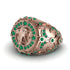 Embrace the strength and wisdom of the elephant with this stunning men’s fashion ring. Crafted from radiant gold, this ring showcases a detailed elephant head at its center, symbolizing power and resilience. Encircled by 106 Emeralds, each stone enhances the design’s grandeur, creating a radiant aura around the majestic centerpiece. Handcrafted with meticulous attention to detail, the intricate patterns surrounding the elephant evoke a sense of timeless elegance. This ring is more than just an accessory; it’s a tribute to strength, grace, and the enduring beauty of nature.