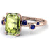 Show off luxury, elegance, and style with this fascinating Emerald Cut Peridot Ring with Bezel side stones. This Emerald Cut Peridot Ring with Bezel is a charming round band with a central emerald shaped Peridot and secondary round shaped stones. Not to mention how comfortable it is. For turning heads and impressing everyone, this Emerald Cut Peridot Ring with Bezel is a unique piece that will stay forever.