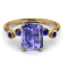 Show off luxury, elegance, and style with this fascinating Emerald Cut Tanzanite Ring with Bezel side stones. This Emerald Cut Tanzanite Ring with Bezel is a charming round band with a central emerald shaped Tanzanite and secondary round shaped stones. Not to mention how comfortable it is. For turning heads and impressing everyone, this Emerald Cut Tanzanite Ring with Bezel is a unique piece that will stay forever.