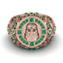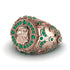 Embodying strength, wisdom, and an untamed spirit, The Majestic Eagle ring is a masterpiece of power and elegance. Crafted from luxurious 14K gold and adorned with 106 dazzling Emeralds, this handmade ring features a meticulously sculpted eagle head at its center—a symbol of freedom and courage. The intricate filigree patterns surrounding the eagle are enhanced by the brilliance of Emeralds, adding depth and sophistication. This ring is more than just an accessory; it's a statement of resilience and pride, designed for the man who soars above boundaries and embraces his own path.