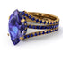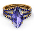 With a timeless style and a luxurious look, this Hidden Halo Marquise Tanzanite Double Band Bridal Set is the most fashionable thing you can wear. This Hidden Halo Marquise Tanzanite Double Band Bridal Set is a thin band with a Marquise Tanzanite center stone and round stones covering the rest of the band and two additional thin wedding bands adjusted to complement the main ring.